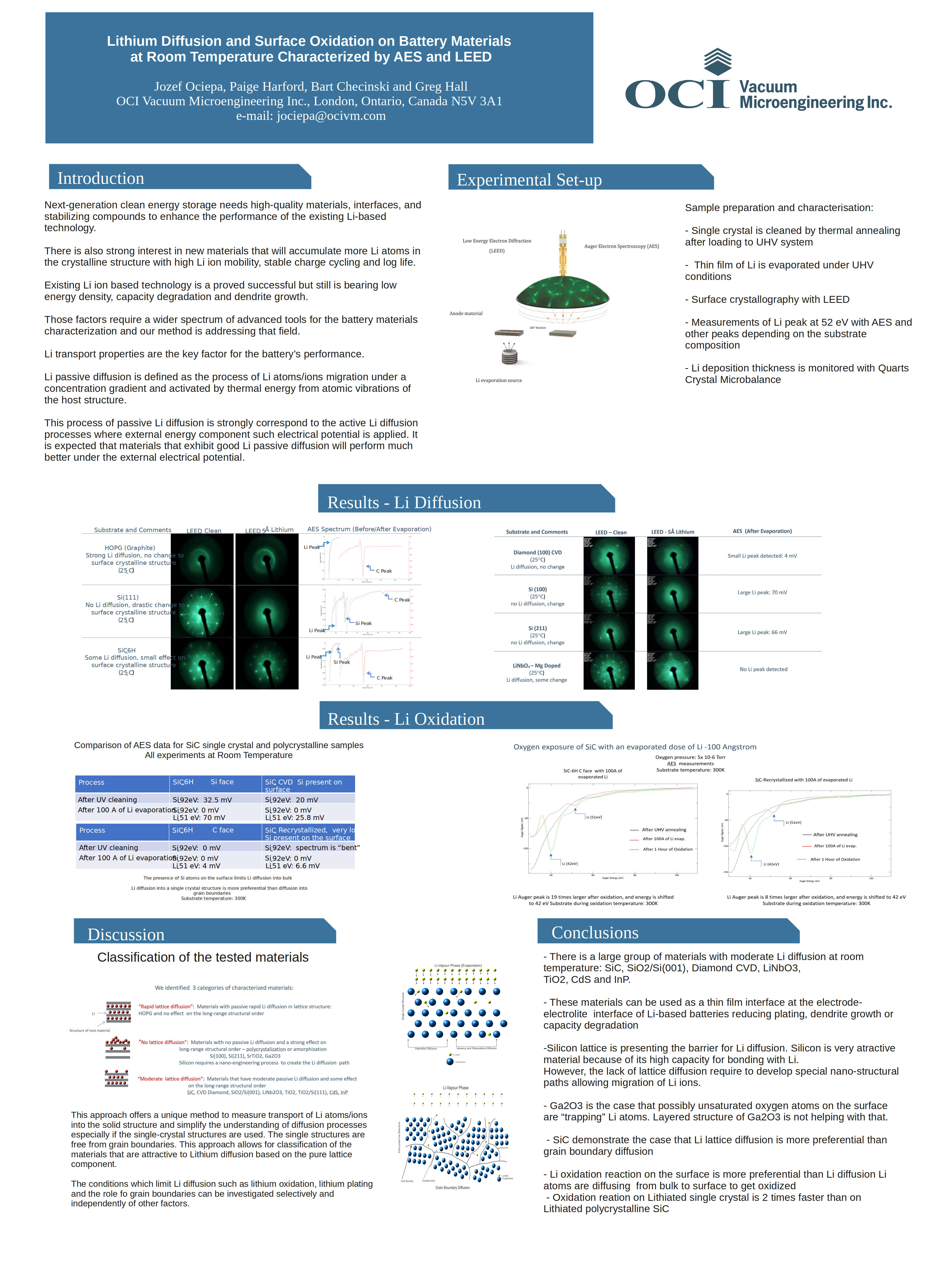 ocivm.com > Science & Applications > Posters & Video Presentations > Lithium Diffusion and Surface Oxidation on Battery Materials at Room Temperature Characterized by AES and LEED