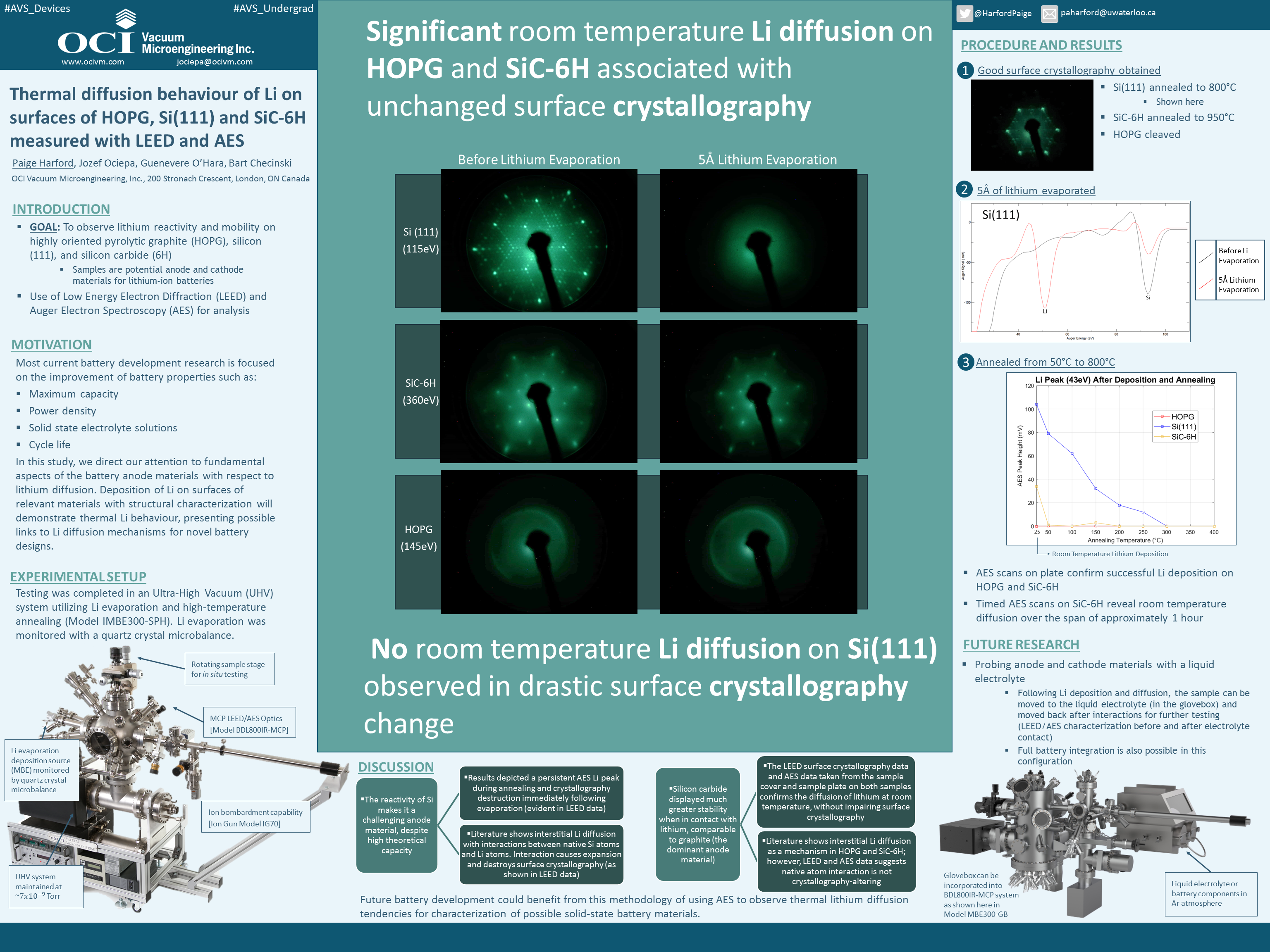 ocivm.com > Science & Applications > Posters & Video Presentations > Thermal Diffusion Behaviour of Li in Surfaces of HOPG, Si(111) and SiC-6H Measured with LEED and AES
