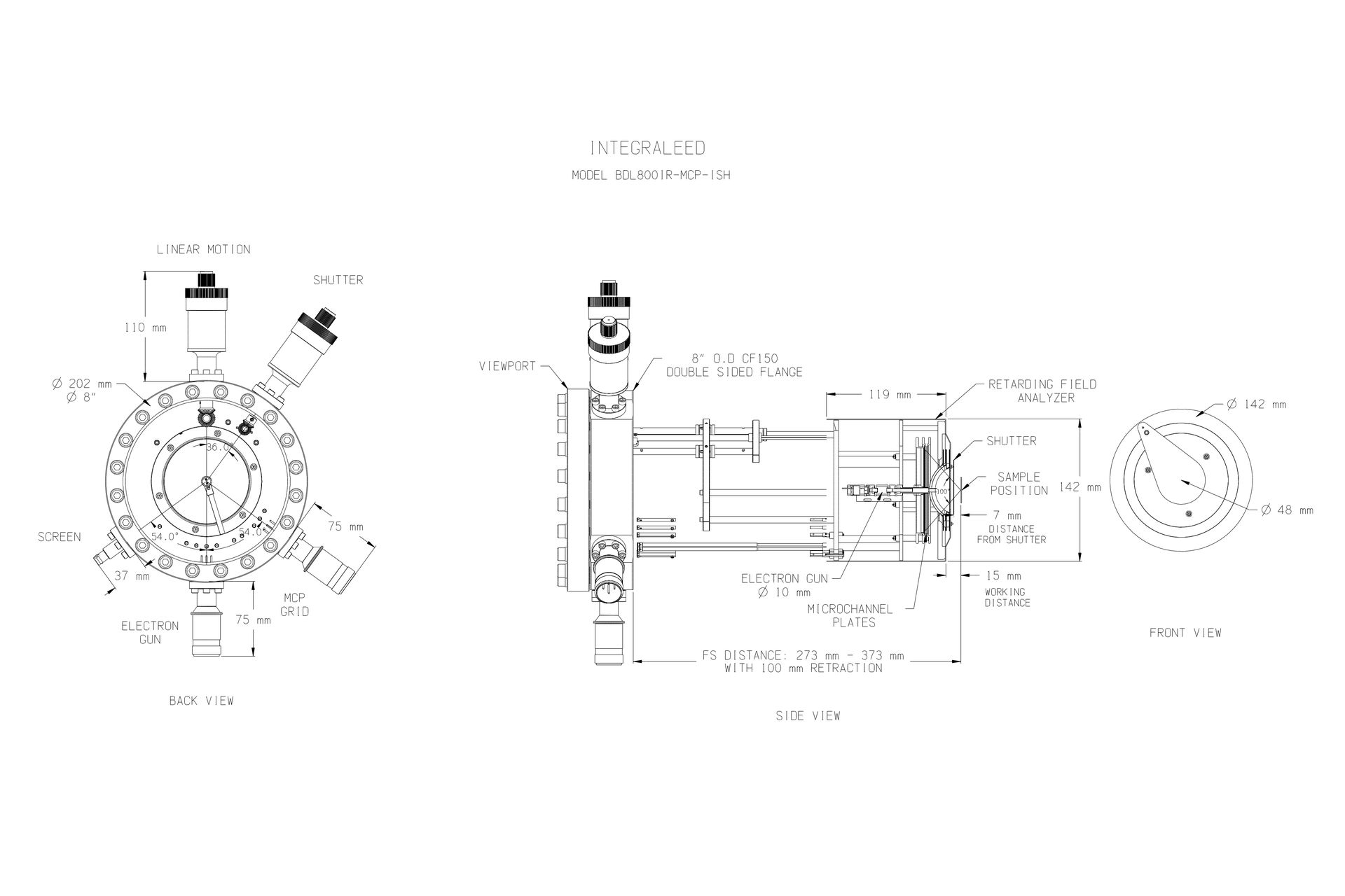 | Integral Shutter | Manual shutter driven by rotary feedthrough |