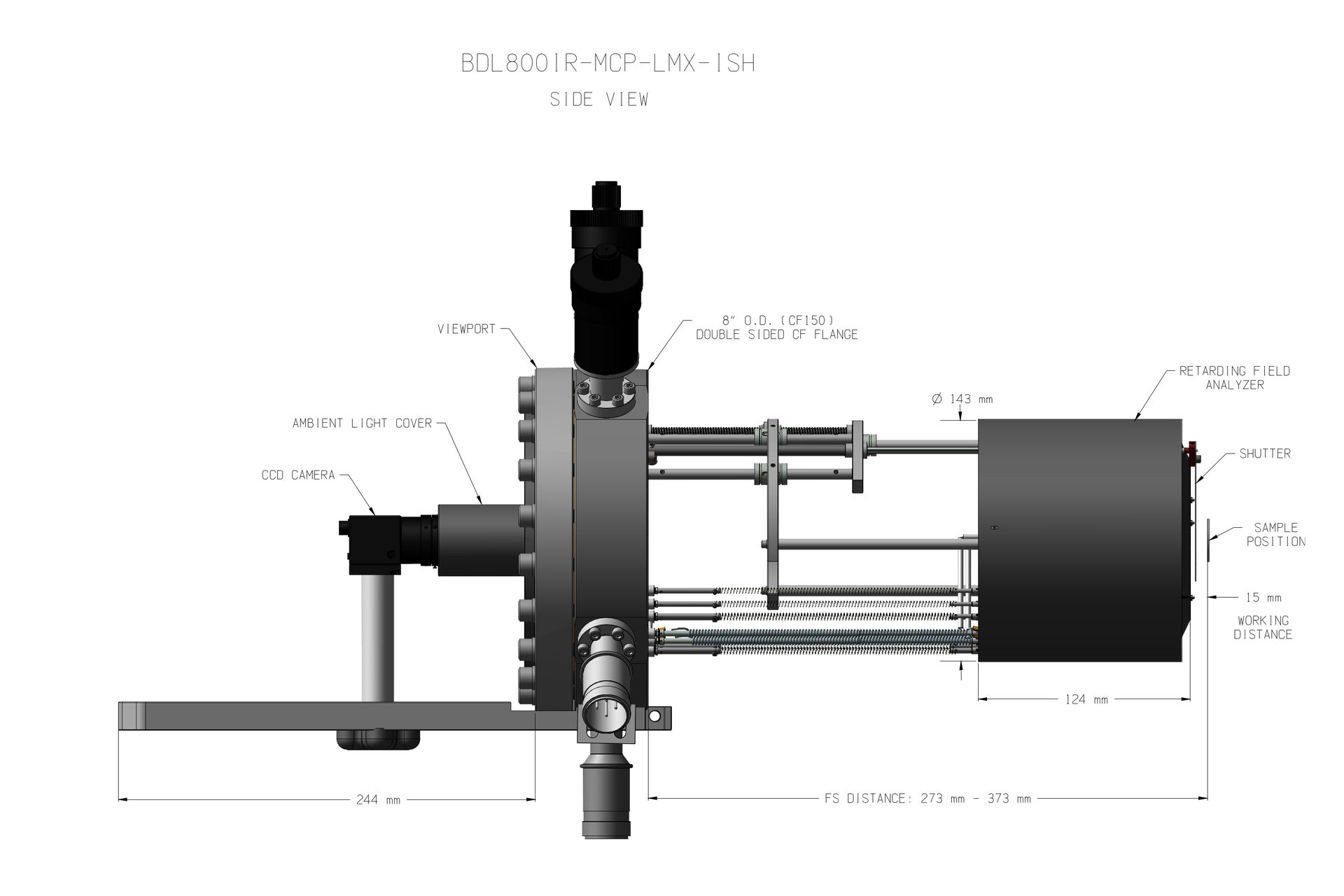 | Mounting | 8"(CF150) double sided conflat flange with sample distance 145mm – 400mm |