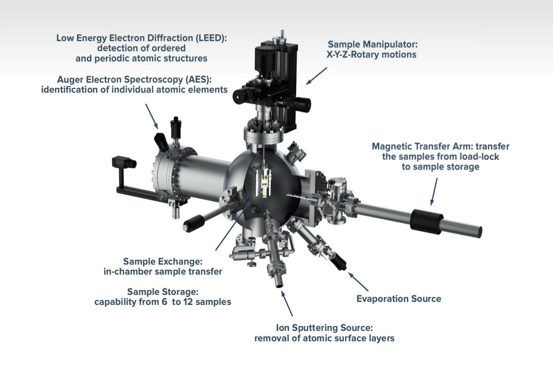 Optional components typically requested by the customer are a rapid sample introduction system (load lock) and bakeout control.